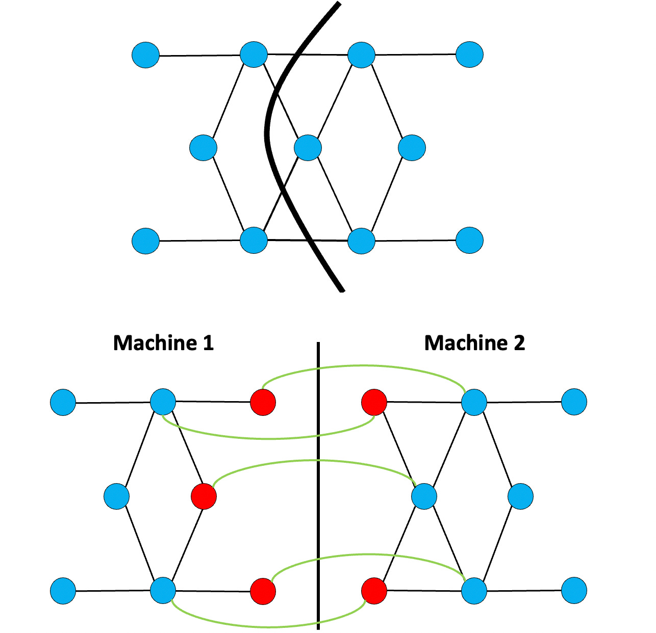 In PowerGraph, we showed an alternative less intuitive solution: that is to place edges on machines, and let vertices span machines.