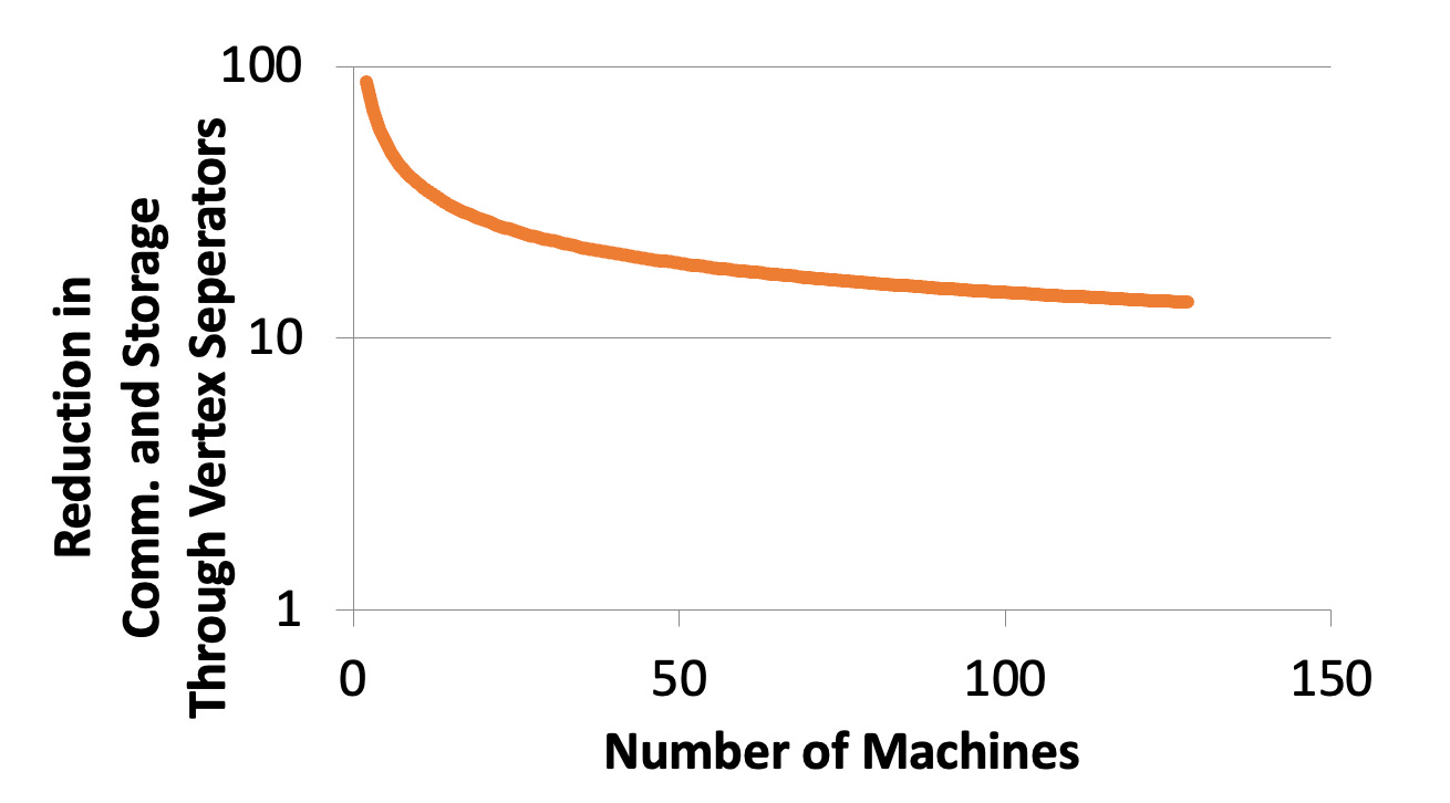 We can demonstrate mathematically that the partitioning edges gives at least an order of magnitude reduction in communication compared to partitioning vertices.
